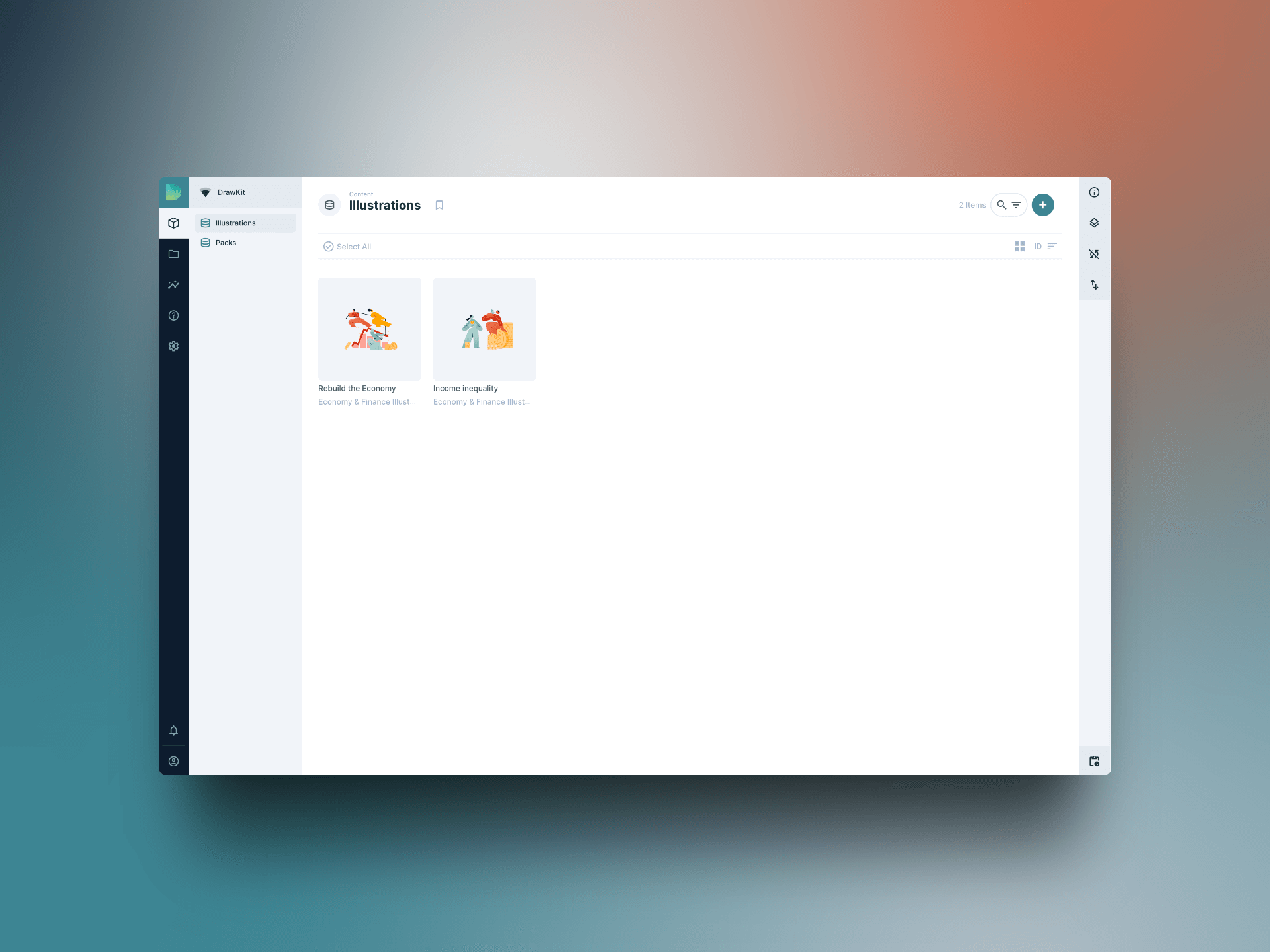 - Show a personalised, temporary dashboard, comprising the catalogue of illustrations and the user’s projects